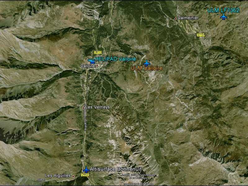 3) Valmeinier LF7362 (plateforme ulm d'hiver permanente) QDR 045° à 9,58 km / 5,16 Nm, Alt : 7000 ft,