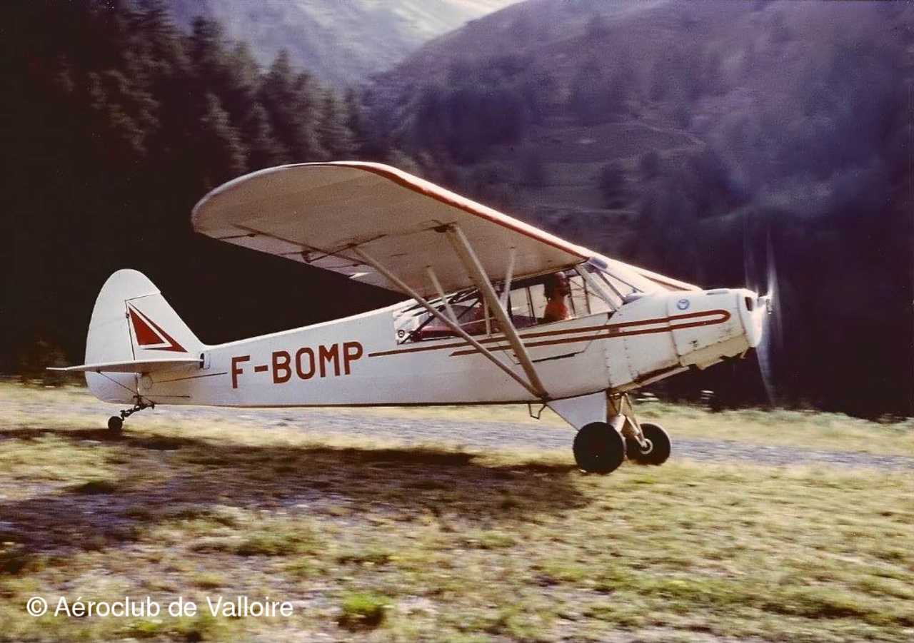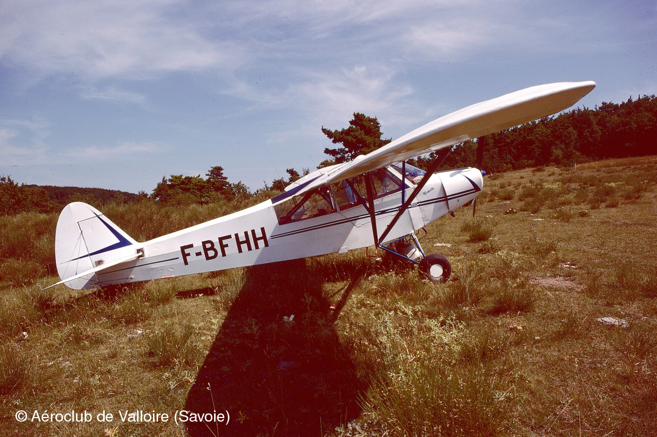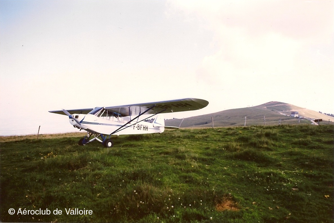 APR1991, Piper L-18C F-BFHH au pied de la Grande Fourche, vu depuis l'aire de pique-nique au Col des Fourches. (diapo Kodachrome_25 numérisée)