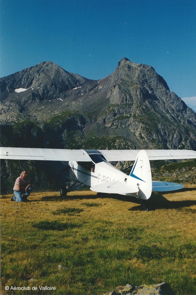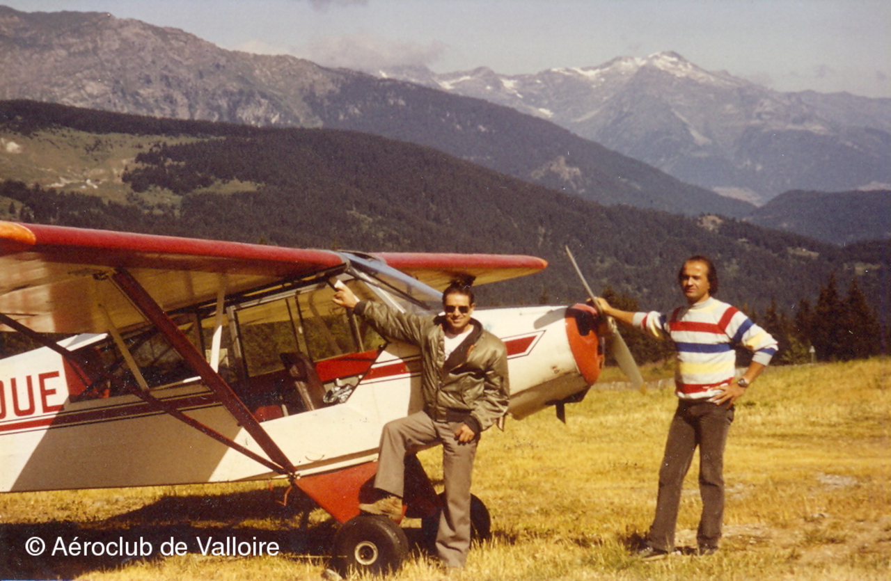Méribel, Août 1983 : Jean-Pierre Contal, nouvellement qualifié montagne, avec Maurice CLAUDE, copropriétaire du L-18C F-BOUE . La piste n'était pas encore revêtue.